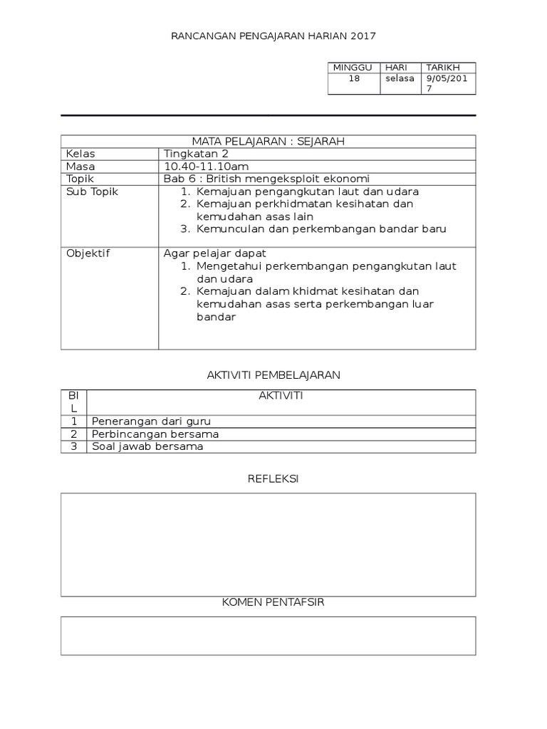 Doc Rancangan Pengajaran Harian Sejarah Muhammad Fadzli Ramli Academia Edu