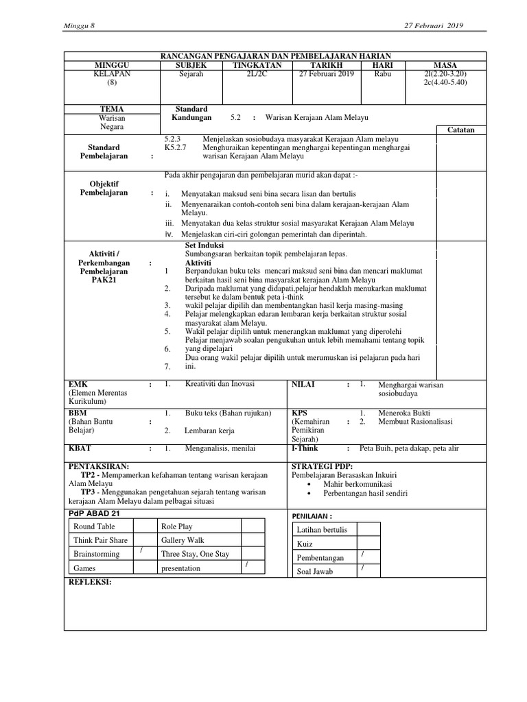 Rancangan pengajaran harian sejarah tingkatan 1. Rancangan Pengajaran Harian Sejarah Tingkatan 2 Hari Tarikh. Rph pendidikan jasmani kesihatan tingkatan 2 2022 2023 rph pendidikan seni visual tingkatan 2 2022 2023 rph sejarah tingkatan 2 2022 2023 rph sains tingkatan Use this promo code RPHPROMO10 at checkout to get MYR 1000 off with minimum purchase MYR 10000.